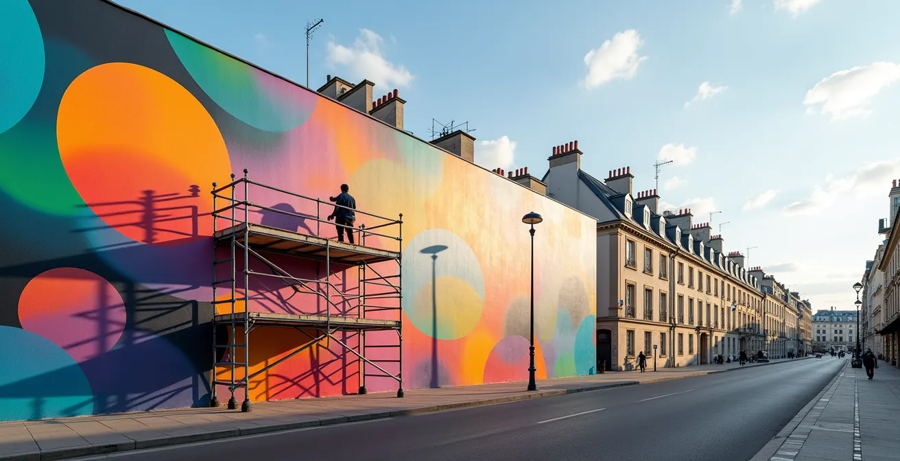 Pour l’œil non averti, la frontière est floue. Pourtant, en France, des indices clairs permettent de faire la part des choses. Une œuvre légale est souvent identifiable. La qualité et l’échelle sont de bons indicateurs : une fresque de plusieurs étages a rarement été peinte en une nuit sans autorisation. De plus, de nombreuses villes, comme Paris, possèdent des murs d’expression libre (comme le M.U.R. Oberkampf) où les artistes se succèdent légalement. Enfin, le dispositif du « 1% artistique » impose depuis 1951 de consacrer 1% du budget des constructions publiques à la création d’une œuvre d’art.
